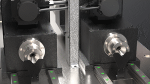 – Bir rayba ve bir yiv-set ünitesi – 7″ dokunmatik panel – Lineer eksenler için 1KW servo motorlar
